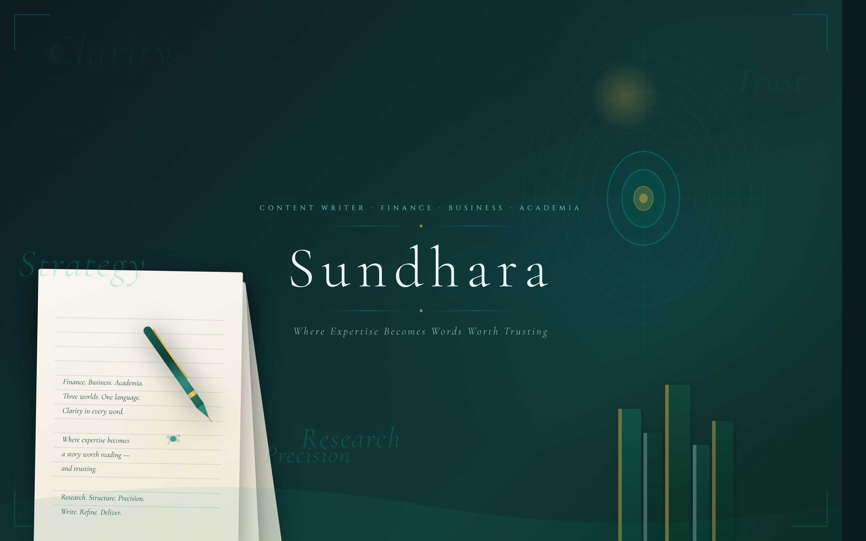 - Every piece of content I deliver is grounded in genuine subject knowledge — researched deeply, written with precision, and built around your specific goals.